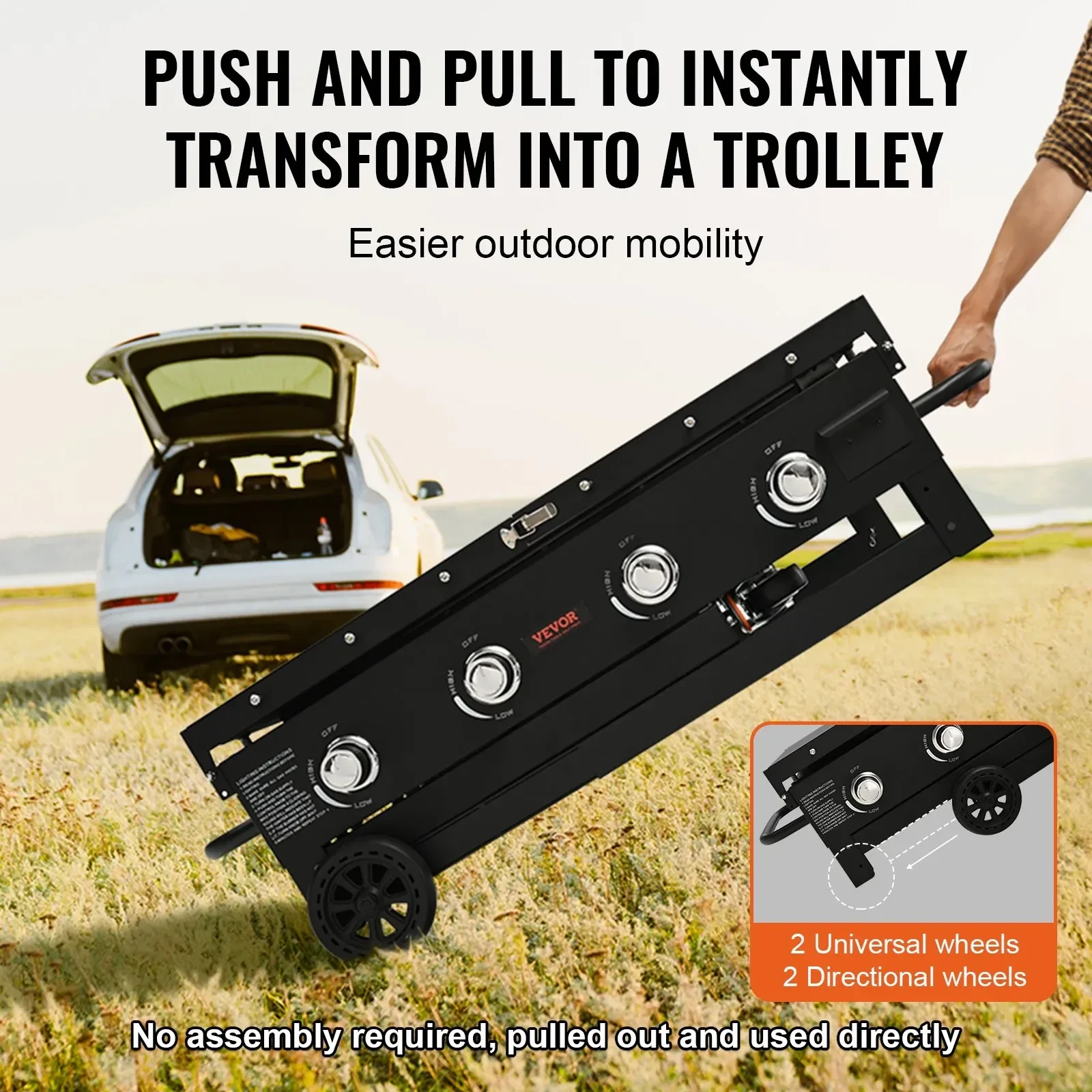 - Convenient Mobility: With built-in wheels, our commercial flat top grill can be easily moved in the yard or outdoors. Unlike other folding grills, it can be dragged in the folded state, making it incredibly convenient when you're on the go. Just take it out of the trunk, and you're ready to move.